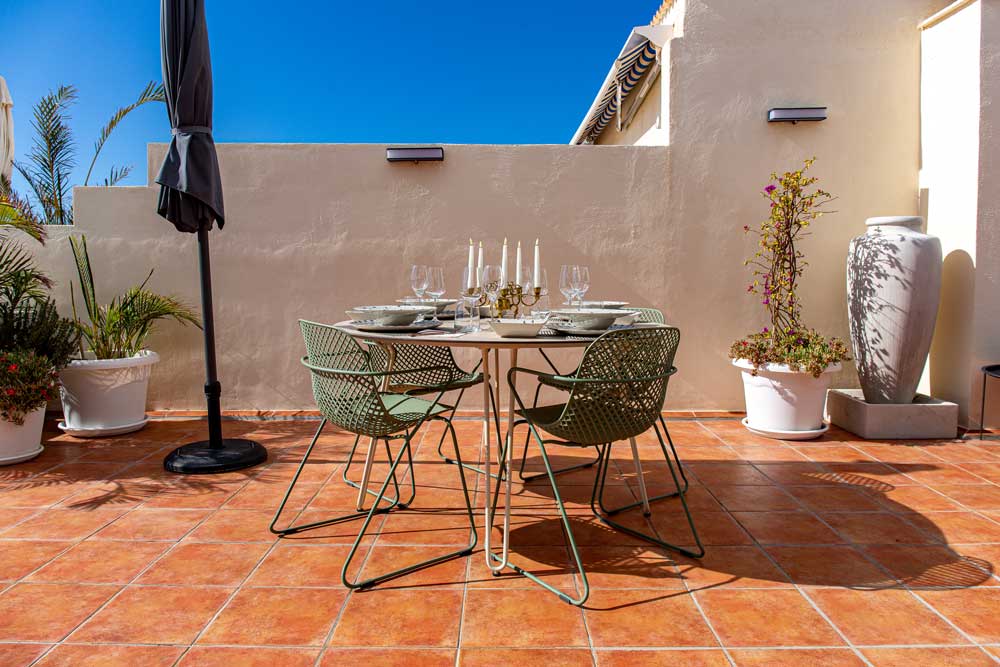 Die Lage unserer Dachterrassen-Wohnung bietet für Sportliche mehrere Golfplätze in der Nähe und für Schwimmbegeisterte direkten Zugang zum Meer, der nächste Strand ist in 10 Minuten fußläufig erreichbar. Ebenso problemlos zu Fuß gelangen Sie zur Apotheke, zu Bars und Restaurants sowie zu Einkaufsmöglichkeiten. Zudem erwartet Sie in nur 200m Entfernung der Beach Club, wo Sie sich kulinarisch verwöhnen lassen und erfrischende Drinks genießen können. Das Objekt verfügt zwar nicht über Parkplätze, diese finden Sie aber kostenlos in der Umgebung.