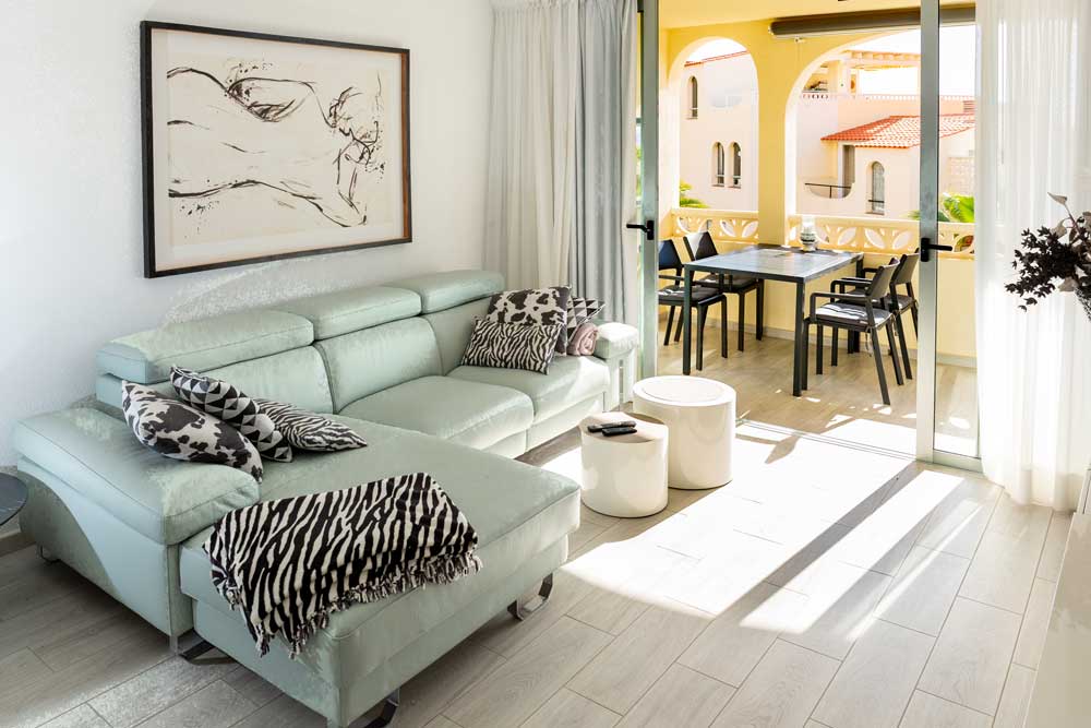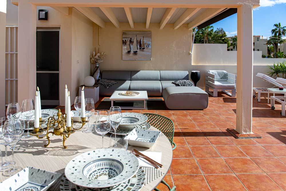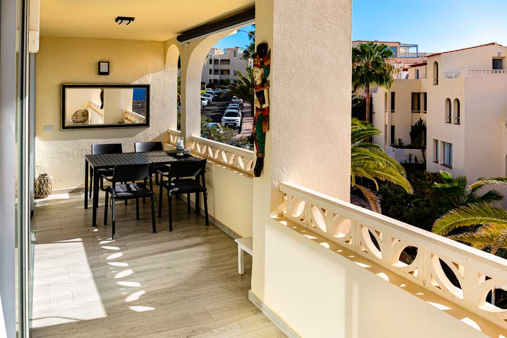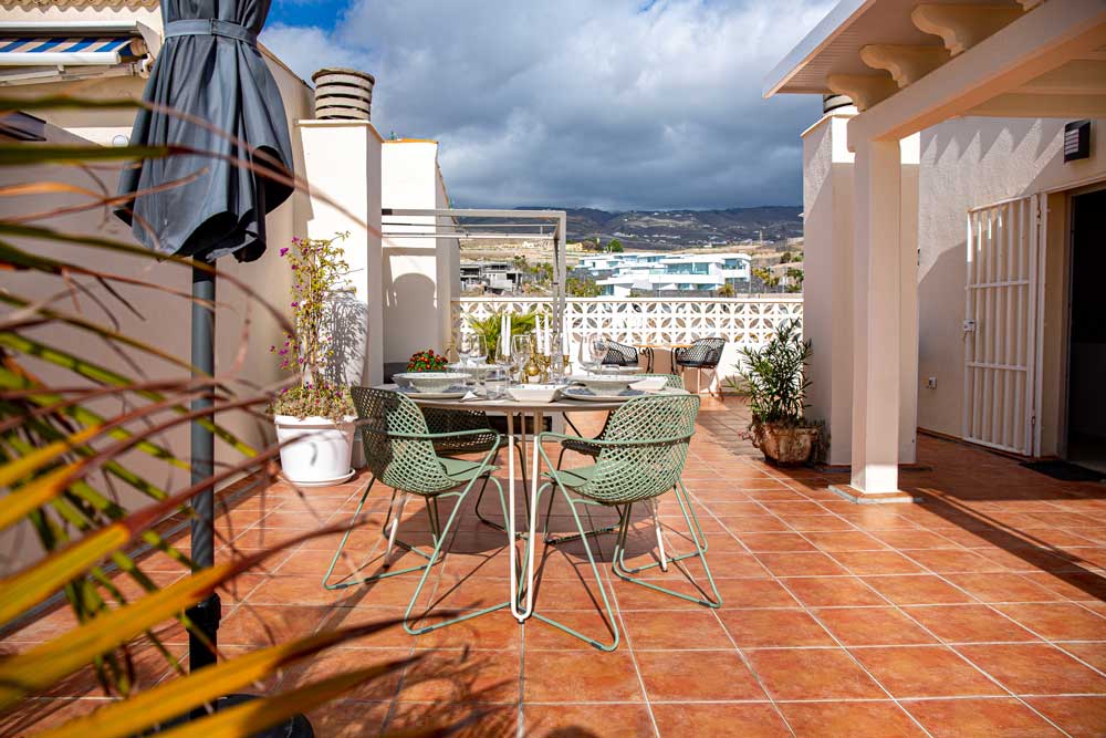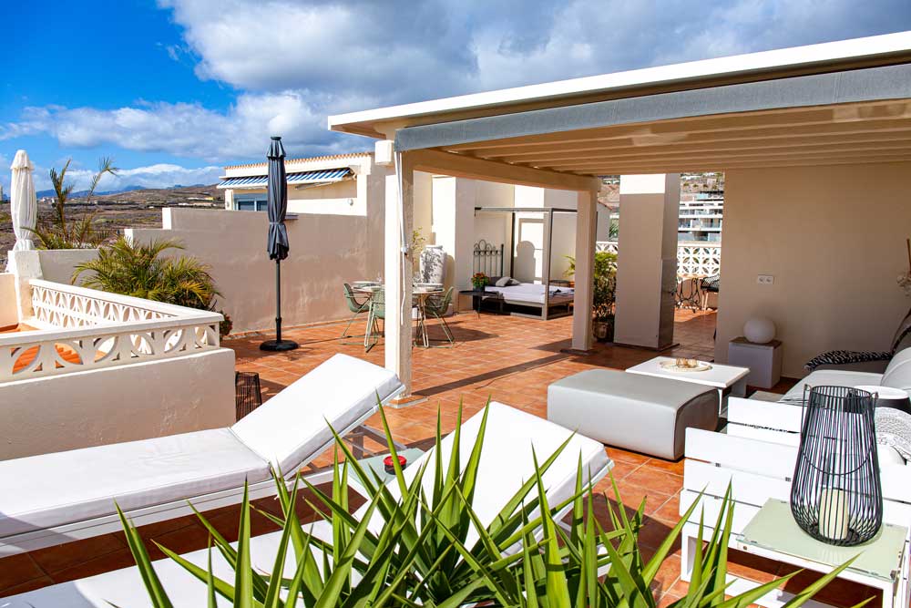 Für das gute Leben, für die schönsten Tage im Jahr, für unvergessliche Nächte… Genießen Sie Ihren Urlaub in dieser in jeder Hinsicht außergewöhnlichen Dachterrassen-Wohnung auf Teneriffa! Die südliche Atmosphäre, die salzige Ozeanluft, die mit jeder sanften Brise heranweht, die wohlig sonnigen Tage und die lauen Nächte sorgen für eine entspannte Zeit, die Ihnen noch lange in angenehmer Erinnerung bleiben wird. Zur wahren Wohlfühl-Oase macht unsere Wohnung nicht nur die 65m2 Dachterrasse mit Außendusche, sondern auch 2 getrennt begehbare Zimmer mit jeweils eigenem Bad. Die Lage des Objekts bietet für Sportliche mehrere Golfplätze in der Nähe und für Schwimmbegeisterte direkten Zugang zum Meer, der nächste Strand ist in 10 Minuten fußläufig erreichbar. Zu Fuß gelangen Sie auch zu Apotheken, Bars und Restaurants. Zudem erwartet Sie in nur 200m Entfernung der Beach Club, wo Sie sich kulinarisch verwöhnen lassen und erfrischende Drinks genießen können.